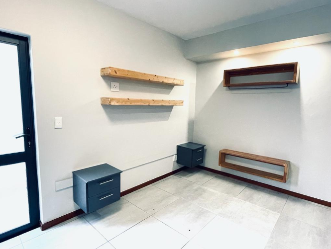 The single bedroom includes an en-suite bathroom for privacy and convenience. Outside, a private patio overlooks a well-maintained garden, benefiting from an irrigation system and a borehole. This tranquil outdoor space is perfect for relaxation.