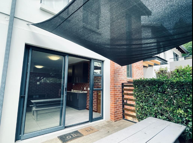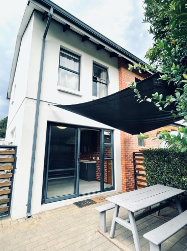 The interior features an open-plan layout, seamlessly connecting the lounge, dining area, and a modern kitchen equipped with a pantry. This design maximizes the 30 sqm floor space, creating an inviting and functional environment. Air conditioning ensures year-round comfort, complemented by high-speed fibre connectivity.